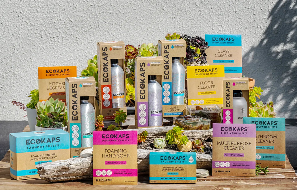 We understand that, like us, you are driven to help reduce your personal carbon footprint. It’s extremely frustrating when doing so often costs much more than regular products. Not any more, thank goodness! Changing to ECOKAPS dissolvable hand soap and cleaning sheets means that, together, we can all take huge steps in the right direction for our planet.